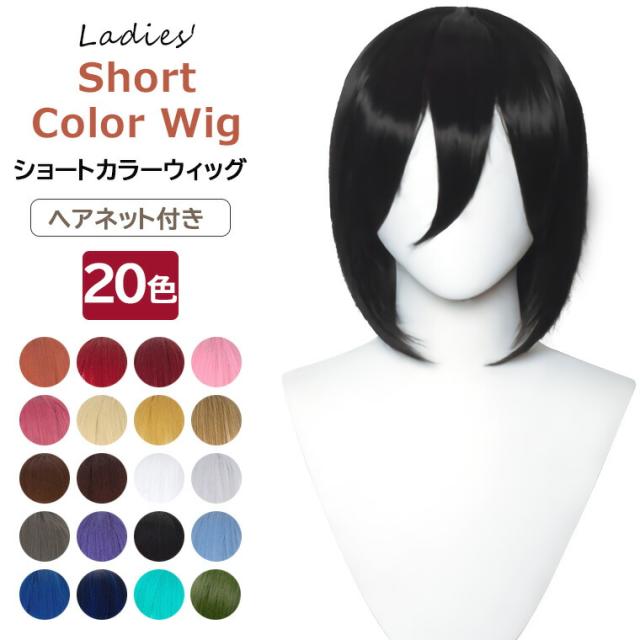 好きな色がみつかるカラバリ豊富な20色ショートカラーウィッグ♪ ウィッグ ショートウィッグ カラーウィッグ 32cm レディース ストレート ボブ wig かつら コスプレ ロリータ ヘアネット付 全