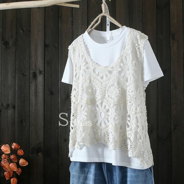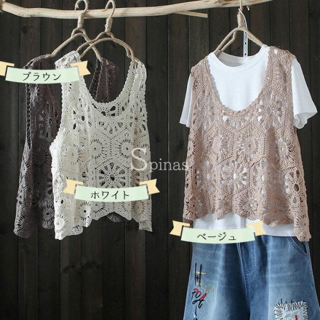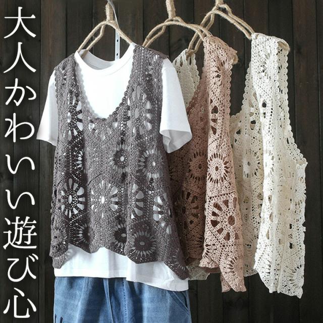 頑張りすぎないお洒落なイメージに 40代 50代 大人かわいい クロシェ編みトップス 重ね着 ベスト クロシェ編みベスト クロシェ 編み スカラップ レース編み カーディガン 袖無し