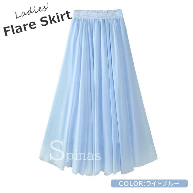 揺れるシルエットが美しい シフォン フレアスカート ロング丈 シフォンスカート マキシスカート レディース ロングスカート ハイウェスト スカート