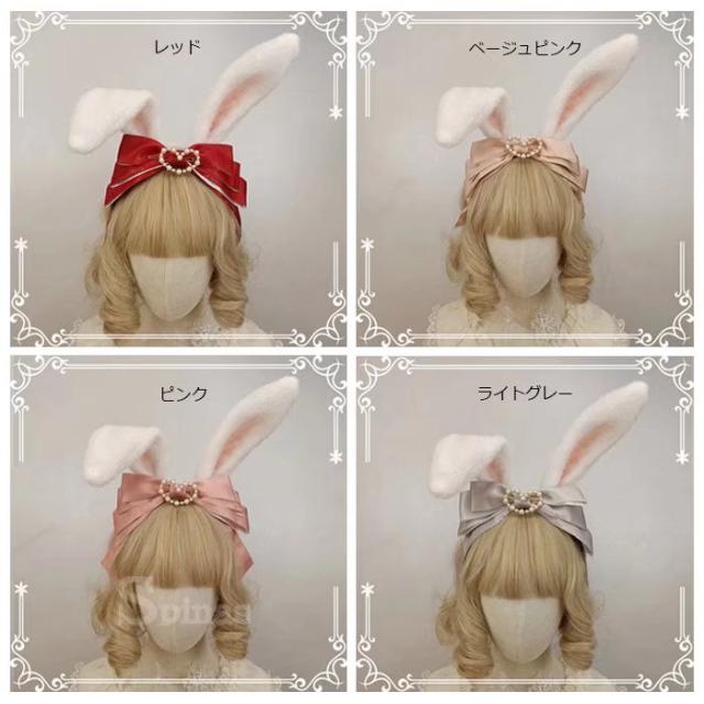 ロリータファッション&コスプレに最適 全8色 2way ふわふわ ウサギ耳 ビッグリボン カチューシャ 髪飾り 蝶結び ヘアアクセサリー ゴスロリ 萌え コスチューム メイドカフェ