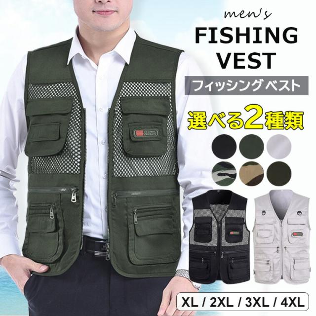 多機能ポケット付きなのが嬉しいポイント ♪選べる2種類 登山 ベスト メンズ フィッシングベスト おしゃれ シンプル ミリタリー ファッション カジュアル アウトドア 釣り フィッシング 夏