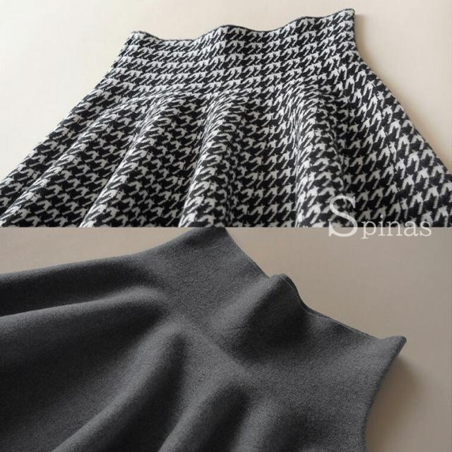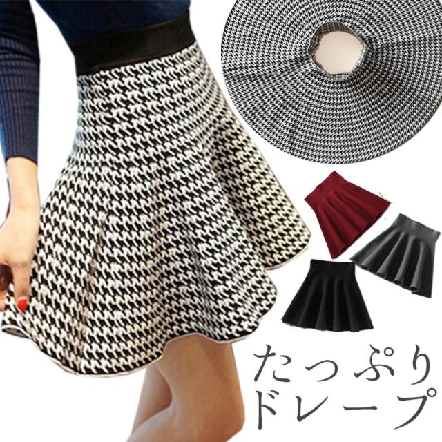 たっぷりドレープのフレアスカート サー レディースファッション 特集 グレー ブラック レッド 千鳥格子 M-L L-XL