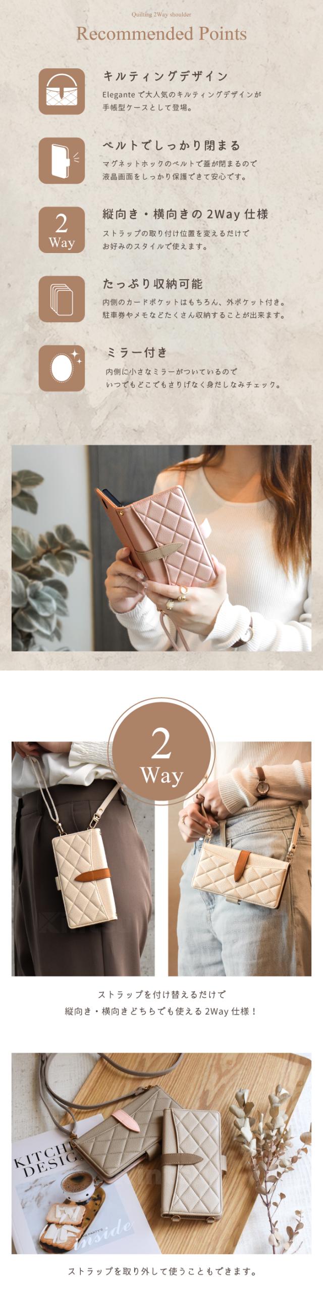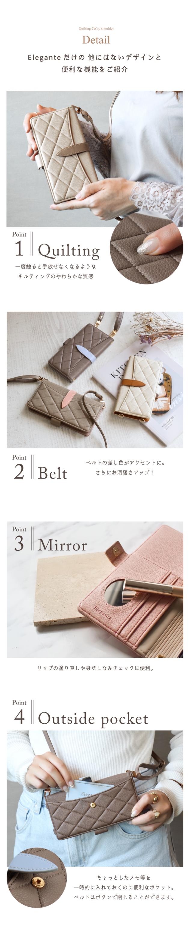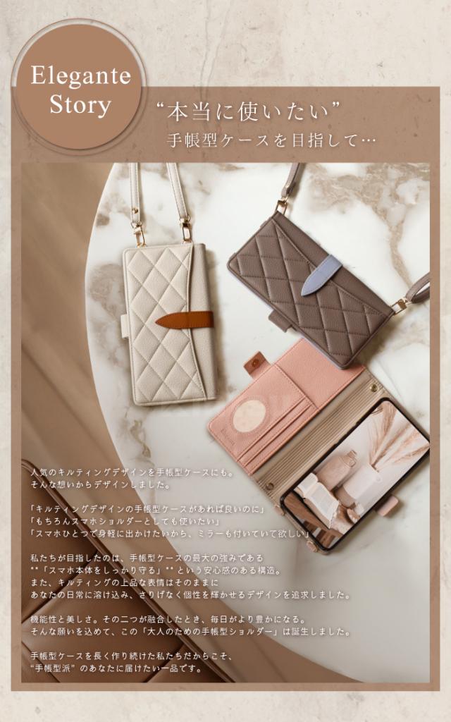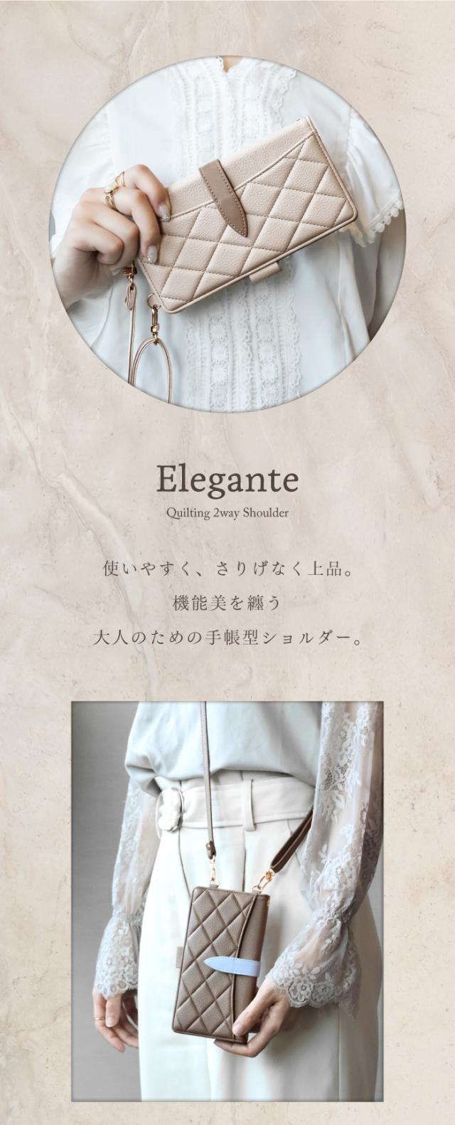 公式 Elegante スマホケース 手帳型 スマホケース 全機種対応 iPhone17 16e 16 15 14 13 se xperia10 1 5 vi v AQUOS sense9 8 7 wish4 pixel 9a 8a キルティング ベルト ショルダー
