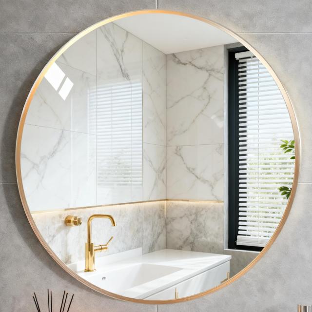 鏡 壁掛けミラー 丸鏡 円形ミラー バスルーム鏡 ウォールミラー アルミフレーム 化粧鏡 玄関 洗面 トイレ(ゴールド 直径30cm)