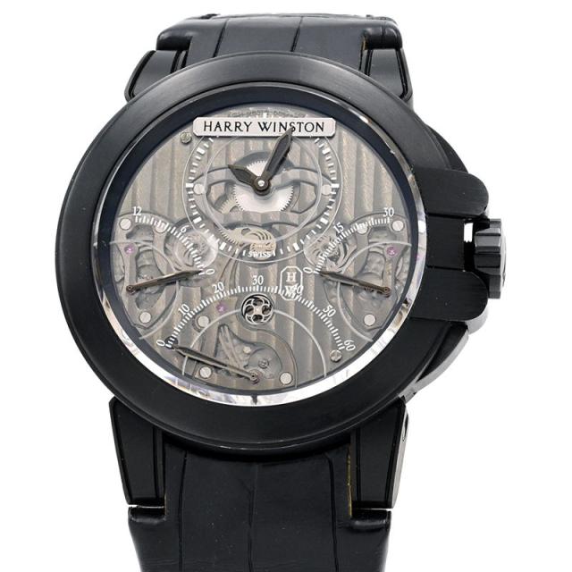 ハリーウィンストン メンズ オーシャン トリレトロ クロノグラフ ブラックザリウム 400/MCRA44ZKL.S 裏スケ 自動巻き 腕時計 中古 送料無料