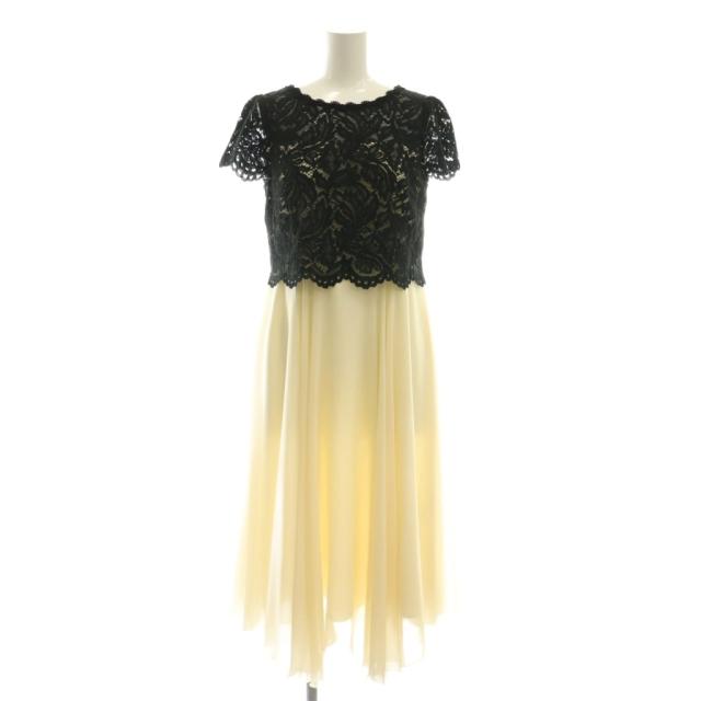 【中古】ストロベリーフィールズ STRAWBERRY-FIELDS レース切替ワンピース ミモレ ロング 半袖 アイボリー 黒