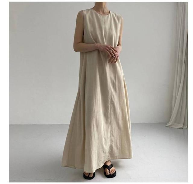 ノースリーブ ワンピース マキシ丈 レディース 春 夏 綿ワンピース マキシワンピース ノースリーブワンピース サマーワンピース ロング丈 ナチュラル ゆったり 可愛い コットン 体型カバー 送料無料