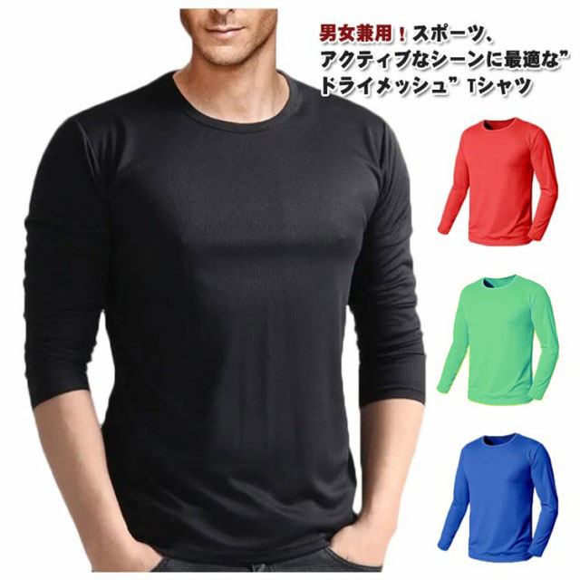 長袖Tシャツ メンズ レディース 長袖 吸汗速乾 ドライ UVカット ロンT 大きいサイズ ドライ Tシャツ 男女兼用 ドライメッシュ おしゃれ 無地 シャツ プラシャツ スポーツウェア トレーニングウェア スポーツ テニス バスケ サッカー ダンス S M L XL 2XL 3XL