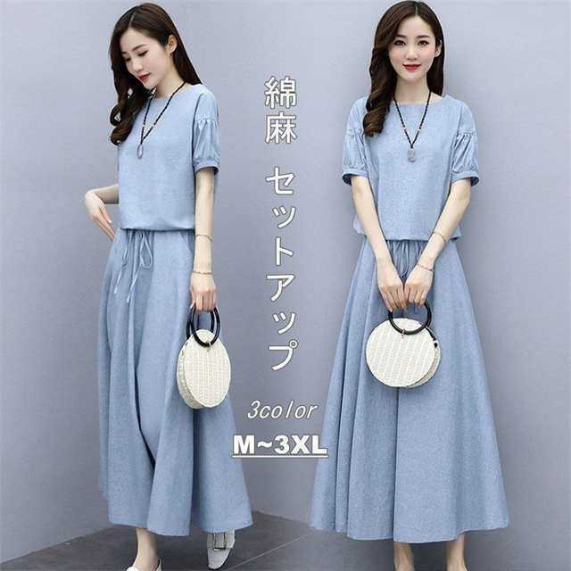 セットアップ レディース リネン薄手 半袖ブラウス スカート お洒落 2点セット 大きいサイズ 結婚式 通勤 夏新作