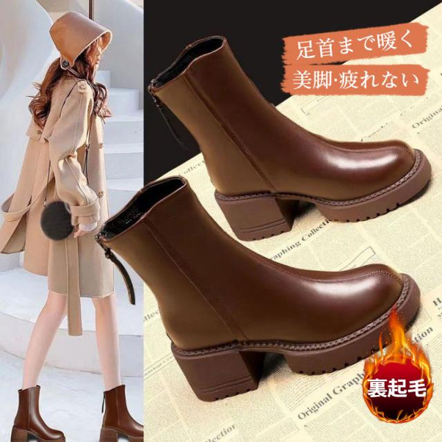 冬新作 ソックスブーツ レディース ショートブーツ 太ヒール チャンキーヒール ブーツ ショート 黒 裏ボア 秋冬 シンプル カジ