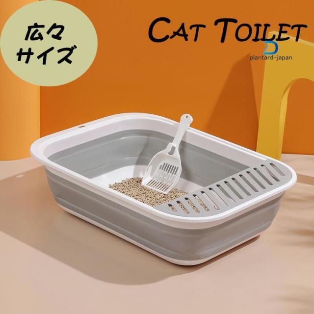 猫トイレ 大きめ ネコ 小型 大型 猫 におい対策大容量 シンプル 開放式 飛び散り防止 ネコ用品 スコップ付き 清潔 猫用品 尿や砂 飛び散りを防ぎます お掃除