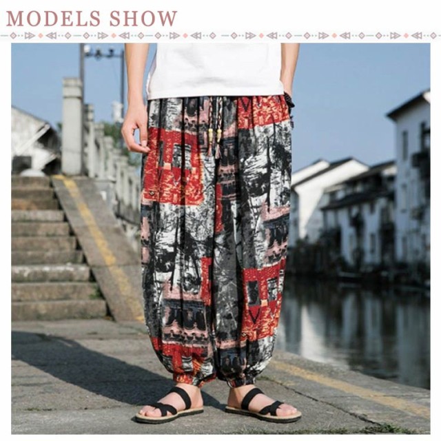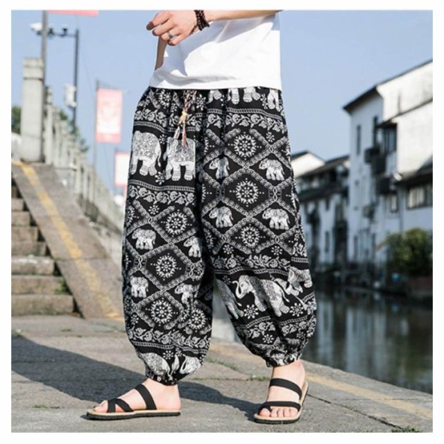 エスニック アラジンパンツ メンズ レディース【夏用 薄手 吸汗速乾】リゾート ホリデー サルエルパンツ