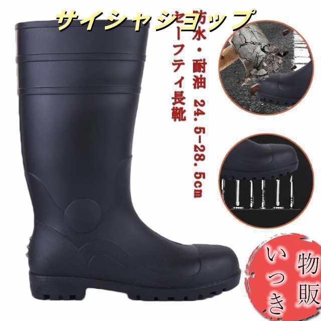 | 防水・耐油 24.5-28.5cm セーフティ長靴 つま先には鉄鋼製の先芯が入っており樹脂製に比べて?度が高く安全性に長けています! 完全防水設計 靴底&アッパー油に?い! | |