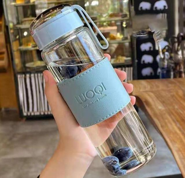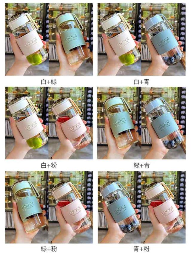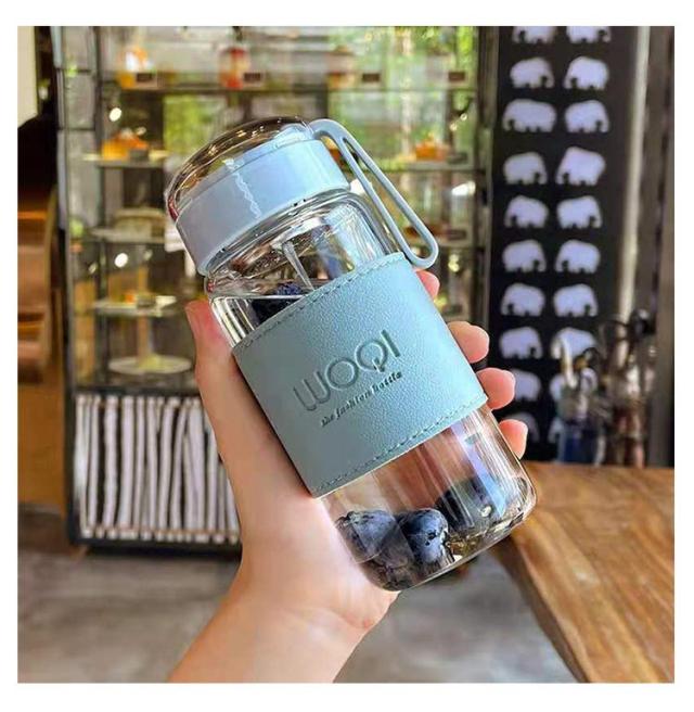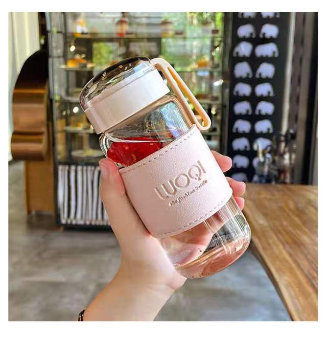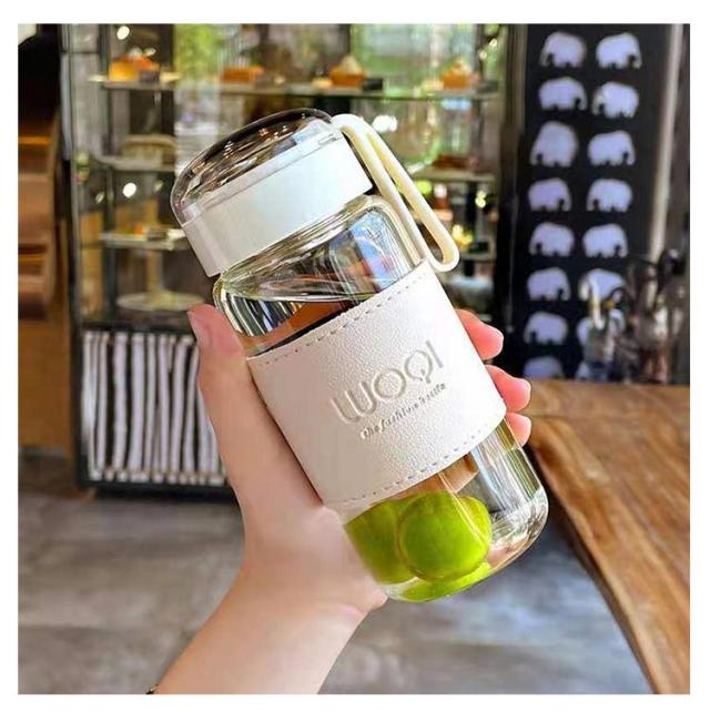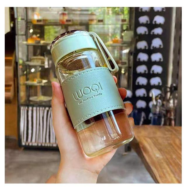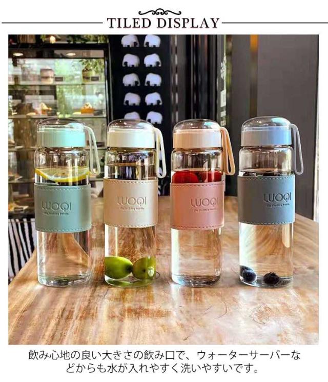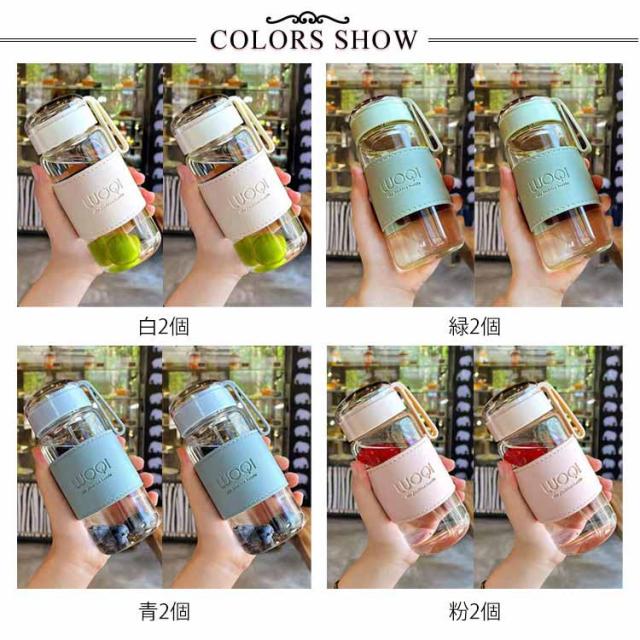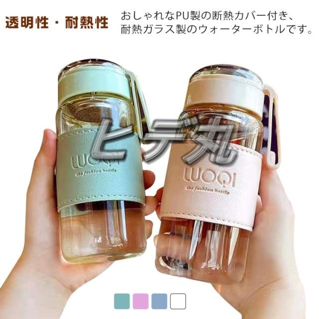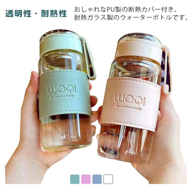 2個セット ガラス ボトル 水筒 シンプル 耐熱 ガラスボトル ドリンクボトル ウォーターボトル 透明 フィルター付き 断熱カバー付き おしゃれ 340ml 480ml 直飲み 水 お茶 男女兼用 マイボトル 漏れ防止 おしゃれ 可愛い アウトドア 通勤 スポーツ キャップ-プラスチック製品