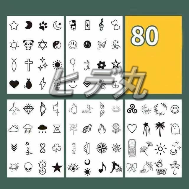 タトゥーシール 80個パターン 刺青シール 草本果汁 ボディシール ステッカー 足 胸 背中 肩 足首 シンプル 長持ち 防水 韓国 おしゃれ