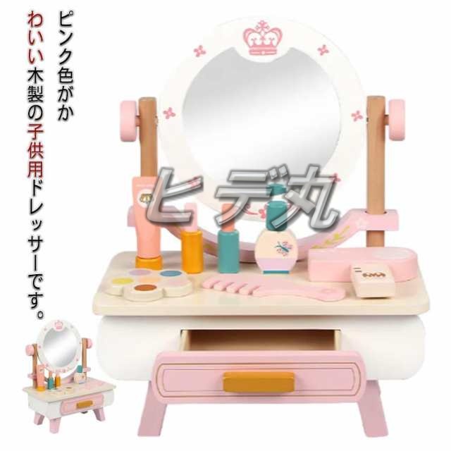 木製 コスメ おうち時間 ドレッサー 子供用ドレッサー 木製玩具 室内遊び 子供 玩具 子供用ドレッサー 知育 こども クリスマス プレゼント 誕生日 ごっこ遊び メイク 化粧 女の子 ミニドレッサー コンパクト かわいい ピンク