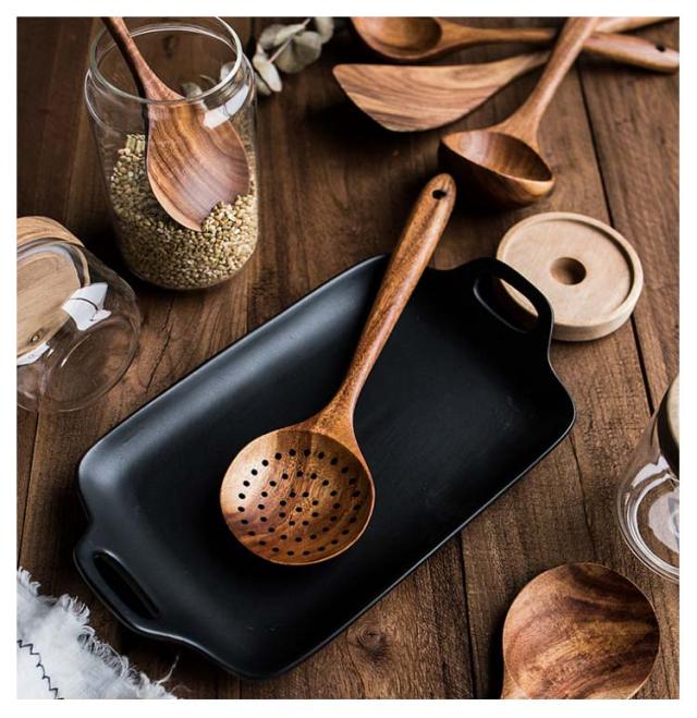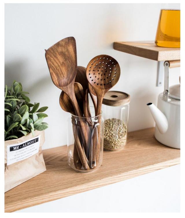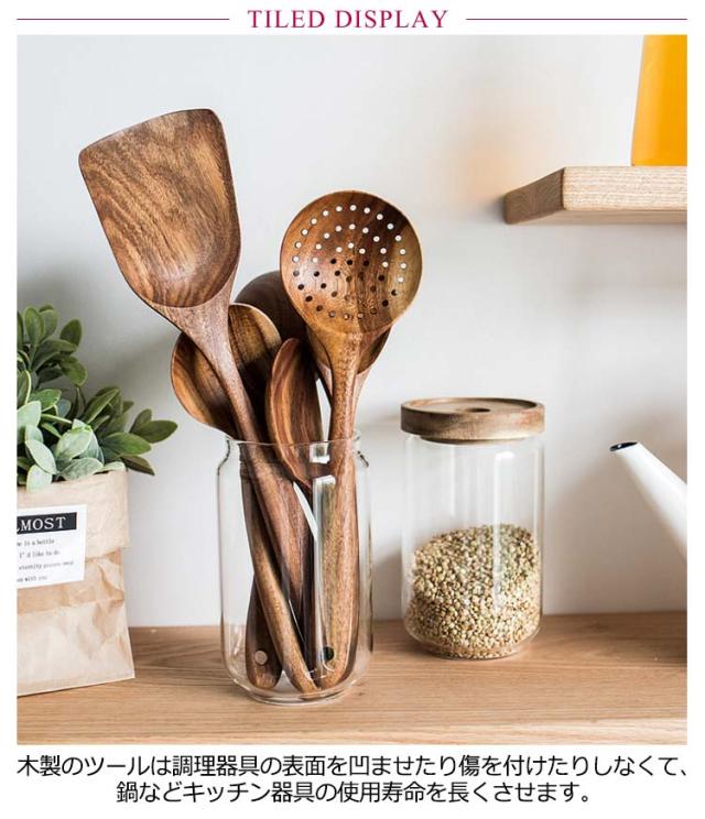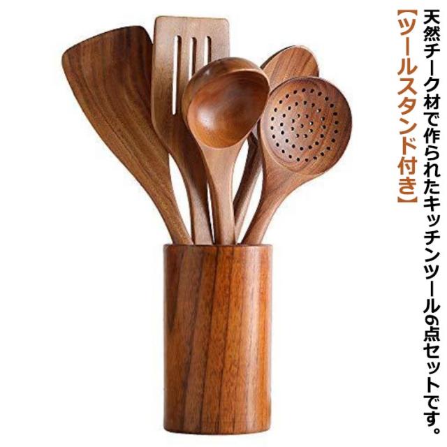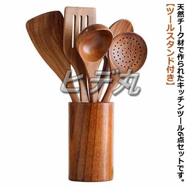収納容器付 6点セット チーク材 キッチンツールセット 漆塗り 調理器具ツール 天然木 木製 キッチンツール キッチンツール 耐熱 吊り下げ おしゃれ スプーン お玉 へら フライ返し 調理器具セット スタンド付き キッチン用品 調理用品