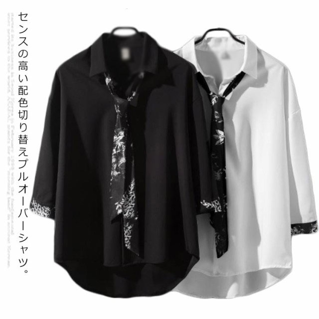 送料無料 プルオーバー シャツ メンズ 長袖 トップス リボンネクタイ付き カジュアルシャツ 春夏 新作 韓国ファッション おしゃれ ストライプ 花柄 原宿系 モダン