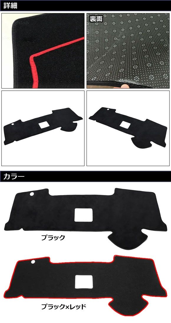 ダッシュボードマット トヨタ アクア MX系 HUD無し車用 2021年07月〜 ブラック×レッド ポリエステル AP-IT4009-BKRD