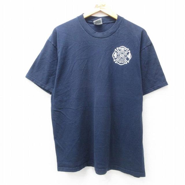 【商品名】 XL★古着 半袖 ビンテージ Tシャツ メンズ 90年代 90s 消防署 大きいサイズ コットン クルーネック USA製 紺