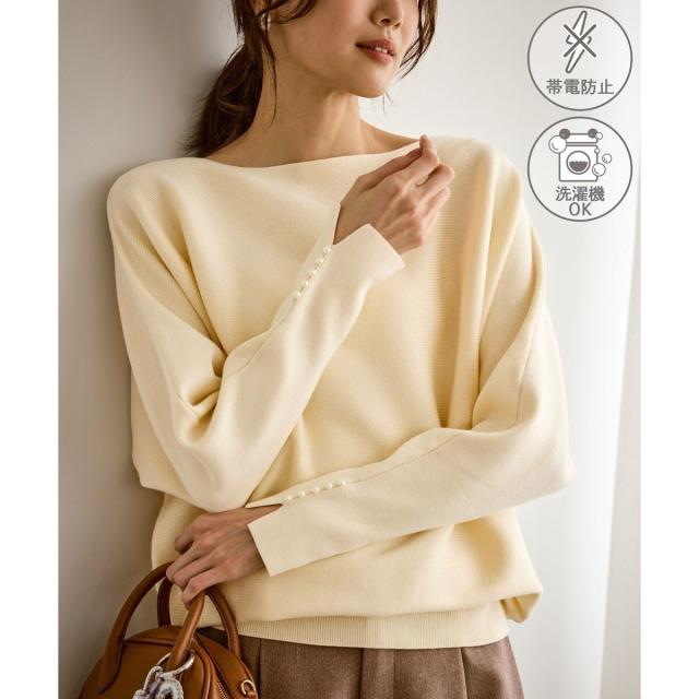マシュマロ袖パールドルマンニット/イージーケア・リンクコーデ