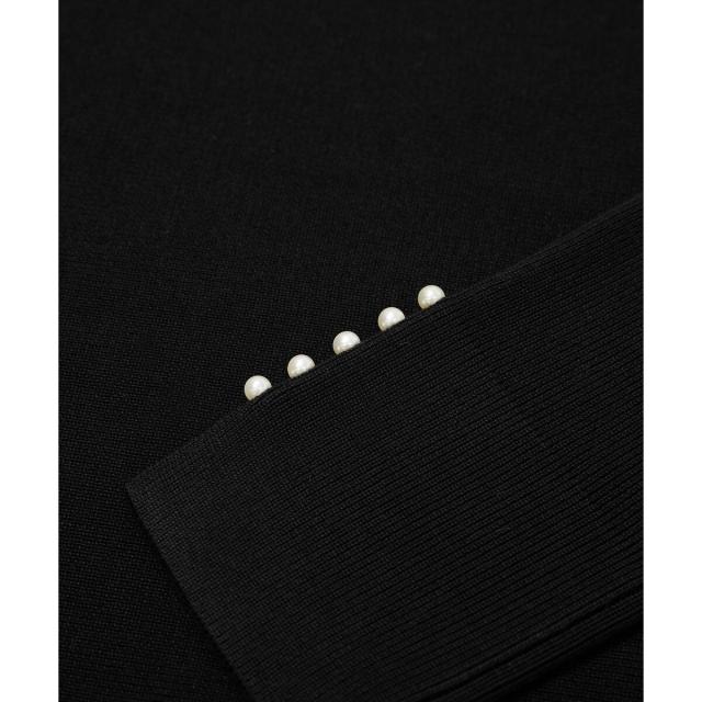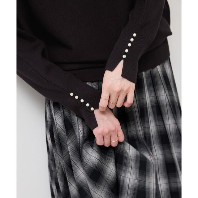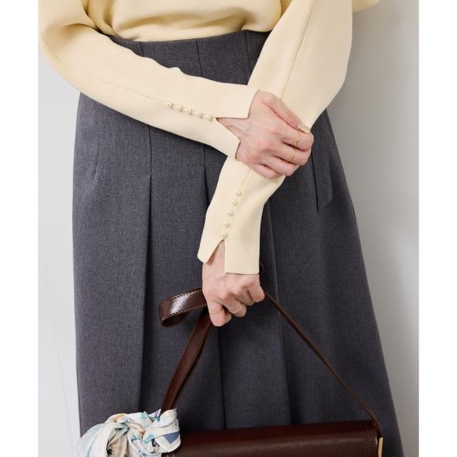 ・袖のパールが映えるので、アクセサリーなしでも華やかに。