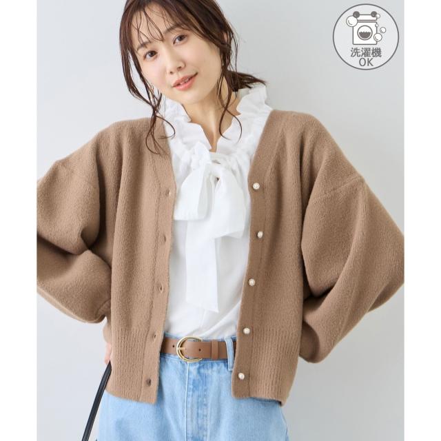 【新色追加】スフレニットシリーズ パールボタンショートカーディガン/イージーケア・リンクコーデ