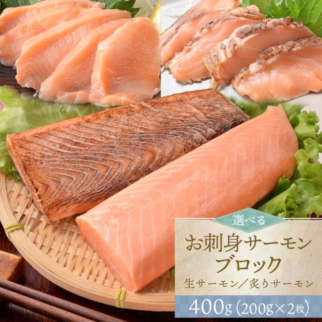 サーモン ブロック 刺身 小分け 生 炙り 選べる 400g(200g×2枚) 柵どり 骨取り済み 生食 冷凍