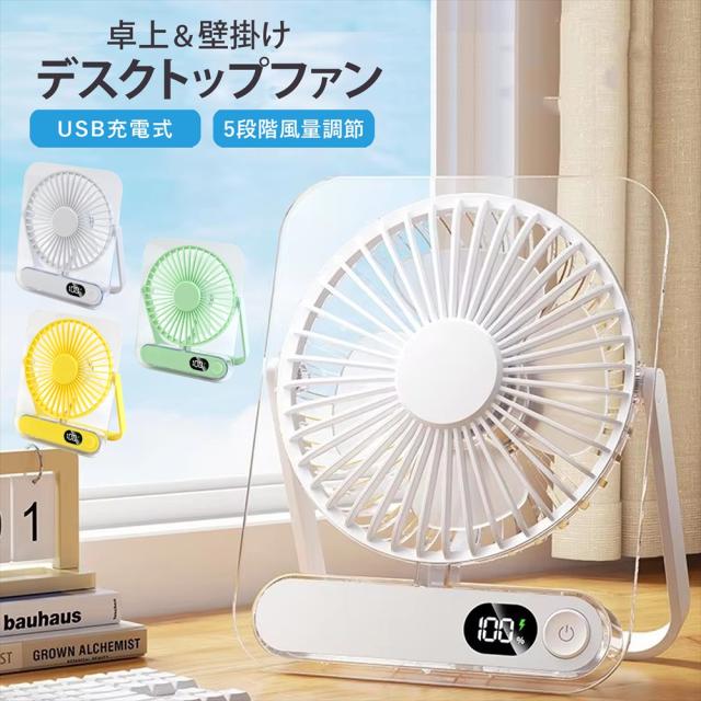 卓上扇風機 充電式 ミニ扇風機 2025 スリム 薄型 オフィスファン デスクファン 静音 USB充電式 5段階 風量調節 デジタル表示 軽量 コンパクト 3WAY 携帯扇風機 卓上 吊り下げ 小型扇風機 Type-C充電式 急速充電 持ち運び 角度調節 ポータブル扇風機 小型 節電 オフィス