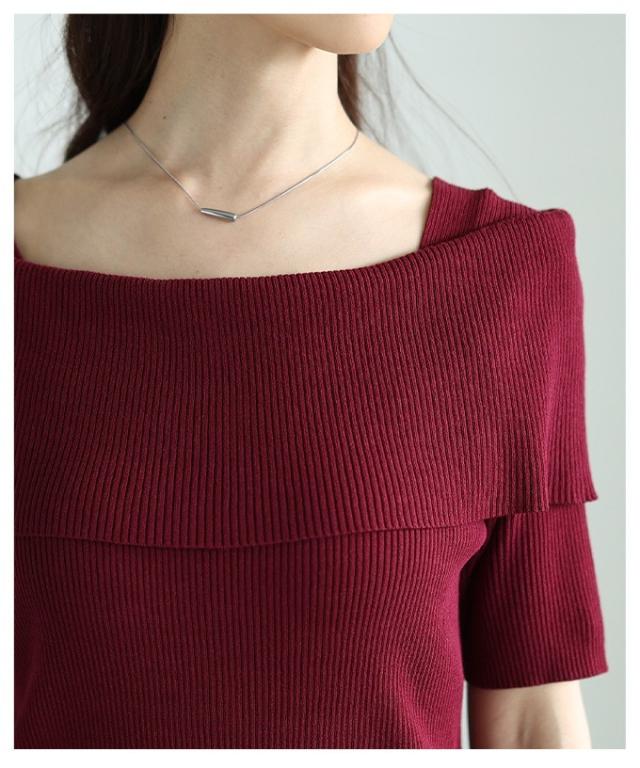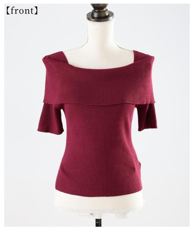 商品名: オフショルリブニット半袖トップス