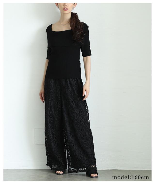 特徴: オフショルダー風 リブニット ストレッチ