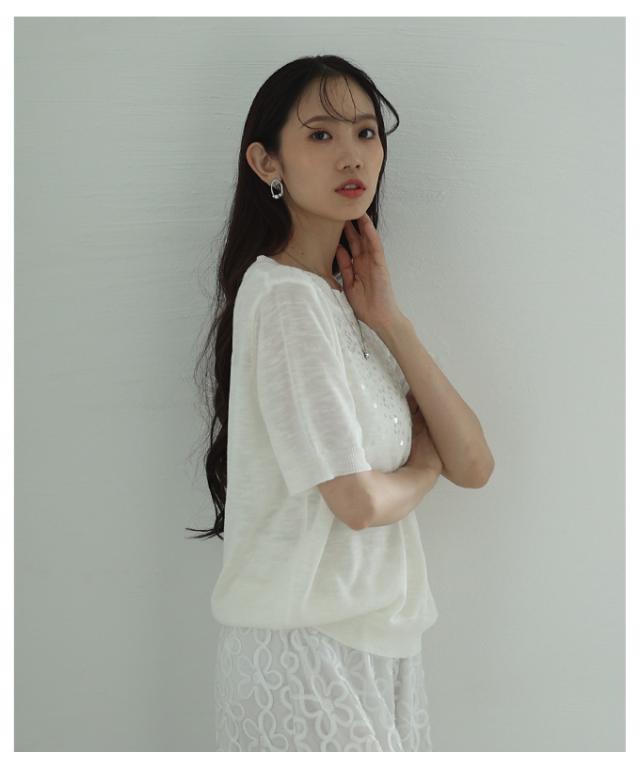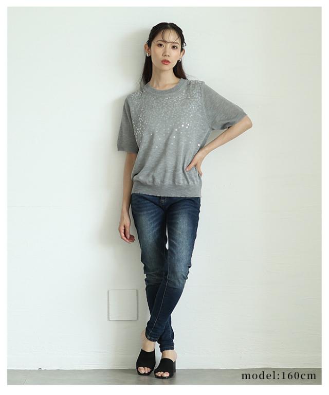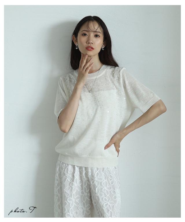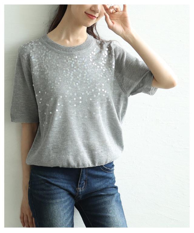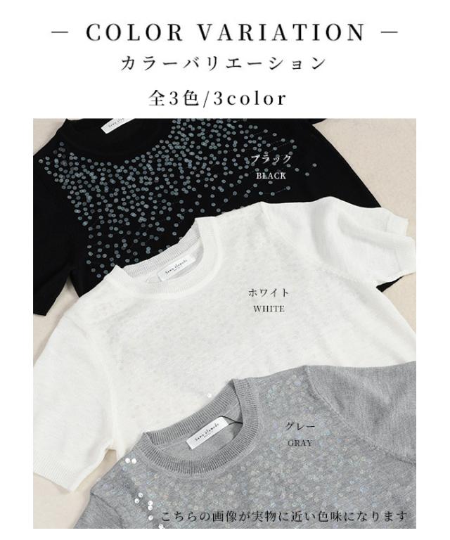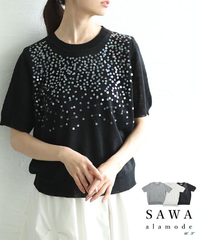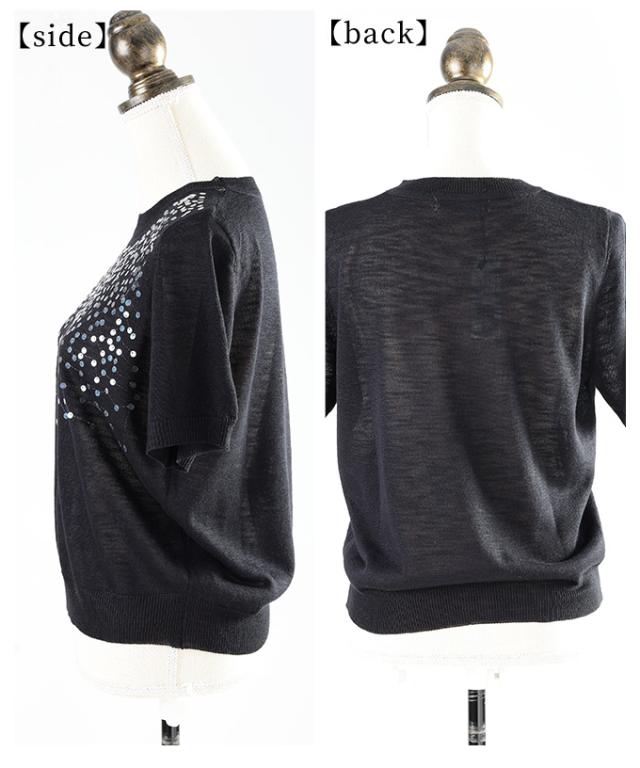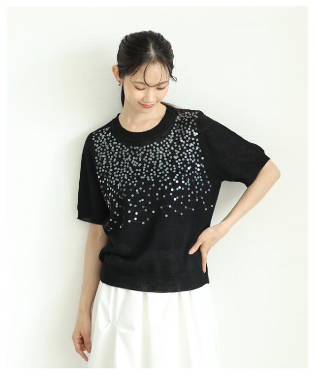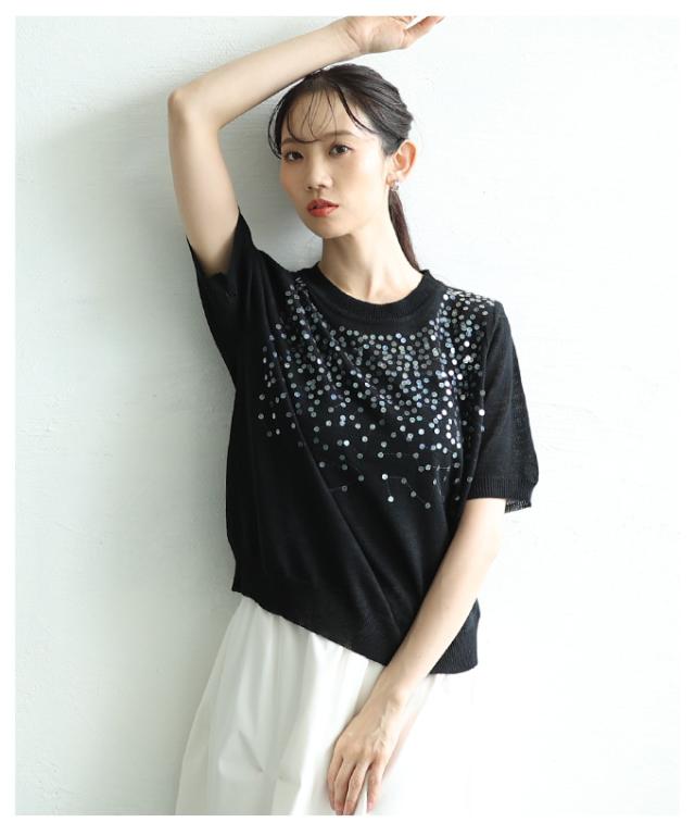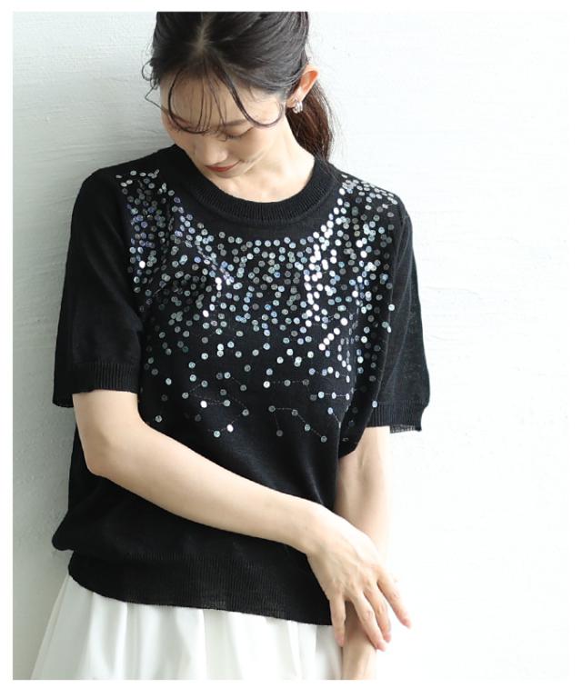 春新作 品のある煌めき放つスパンコールサマーニットトップス レディース ファッション トップス ニット セーター 黒 夏服 大人可愛い 20代 30代 40代 レディースファッション カジュアル 体型カバー おしゃれ きれいめ ママ サワアラモード sawaalamode aljun-992s