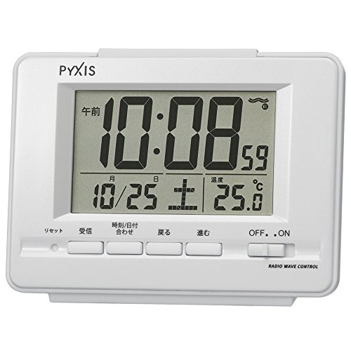 ◆商品名:セイコークロック(Seiko Clock) セイコー クロック 目覚まし時計 電波 デジタル カレンダー 温度 表示 PYXIS ピクシス 白 パール NR535H