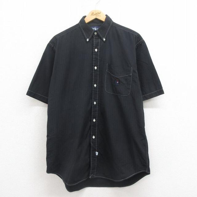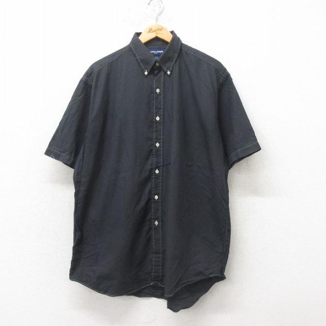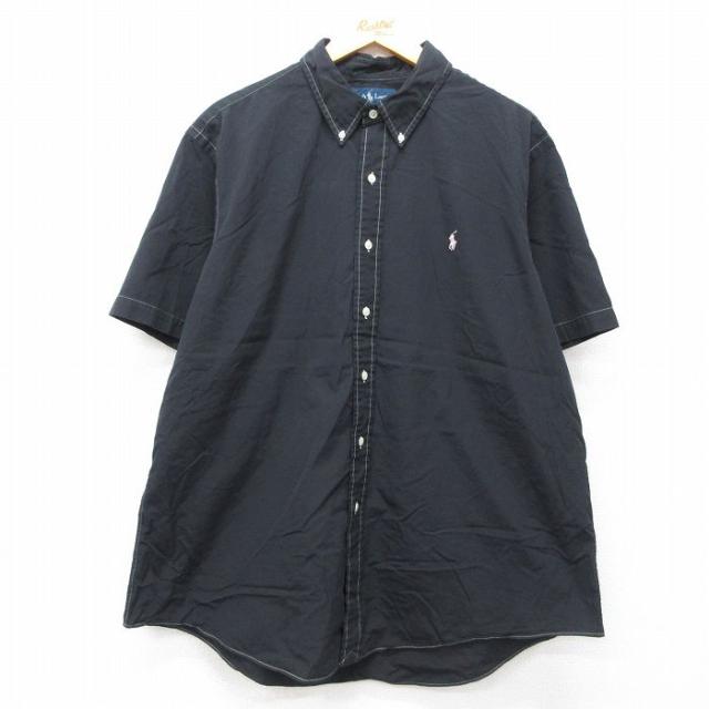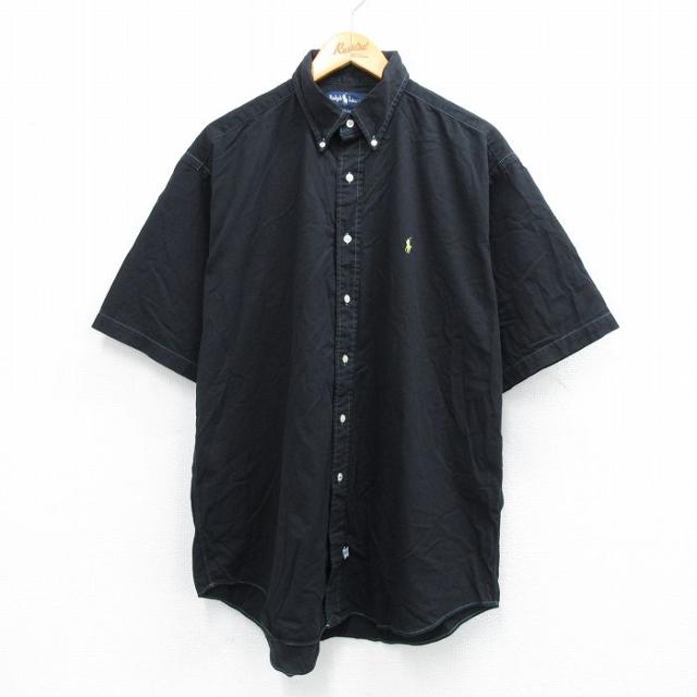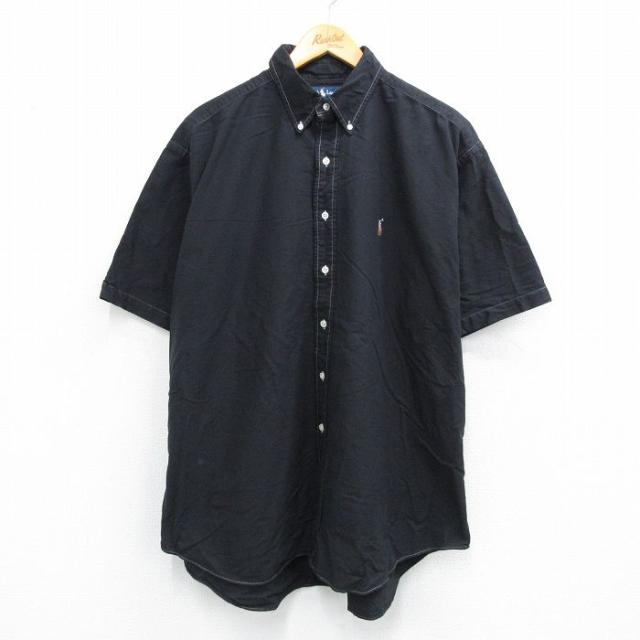 古着 ラルフローレン Ralph Lauren 半袖 ブランド シャツ メンズ 90年代 90s ワンポイントロゴ コットン ボタンダウン 黒 ブラ 中古 古着