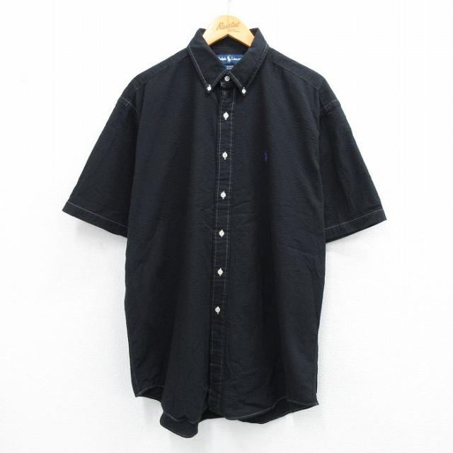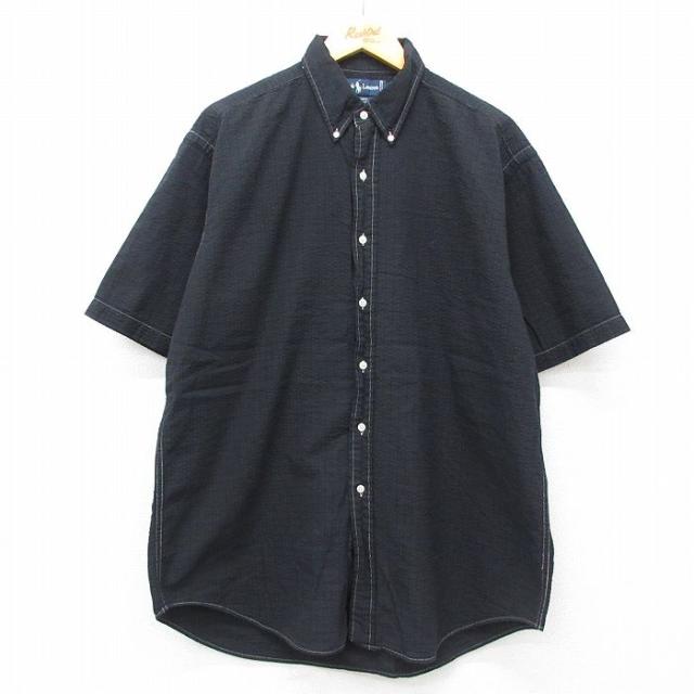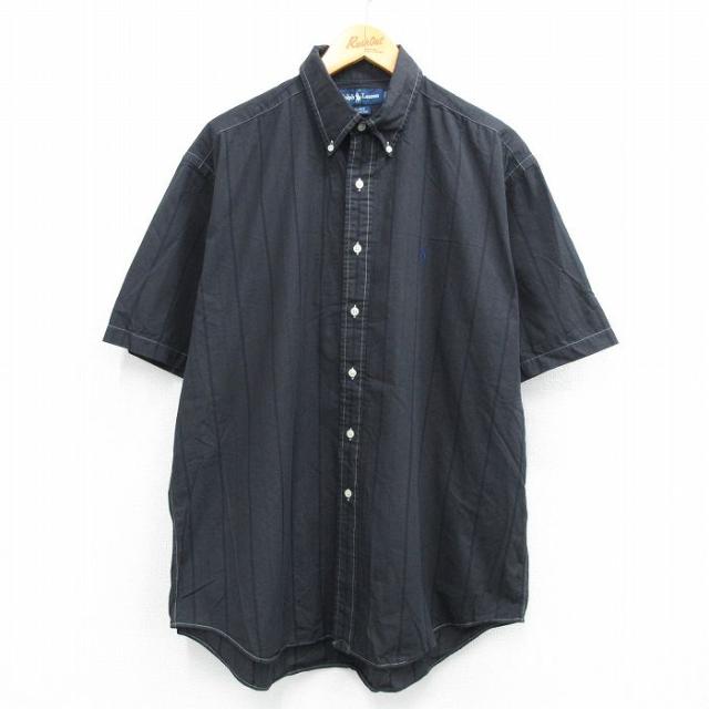 【商品名】 XL★古着 ラルフローレン 半袖 ブランド シャツ メンズ 90年代 90s ワンポイントロゴ コットン ボタンダウン 黒 ストライプ【spe】