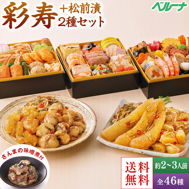 おせち 予約 2026 おせち料理 冷凍 2人前 3人前 彩寿 松前漬2種 和風 洋風 中華 三段重 全46種 プレゼント付 12月29日お届け 【送料無料】