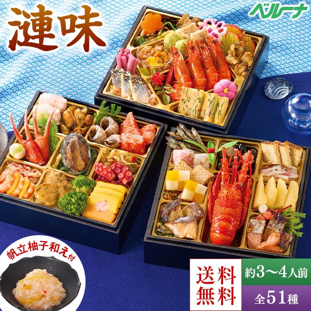おせち 予約 2026 おせち料理 海鮮 冷凍 北海道「蔵」監修おせち 漣味 海鮮三段重 全51種 3人前 4人前 プレゼント付 12月29日お届け 【送料無料】