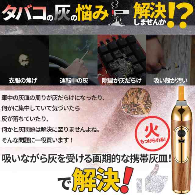 携帯灰皿 灰が落ちない ライター付き ポータブルアッシュトレイ マウスピース3種付き USB充電 持ち運び 車 ドライブ 野外 卓上 屋外 携帯