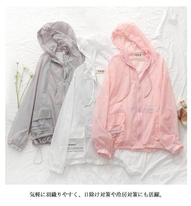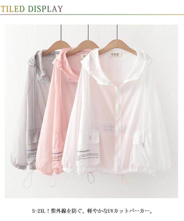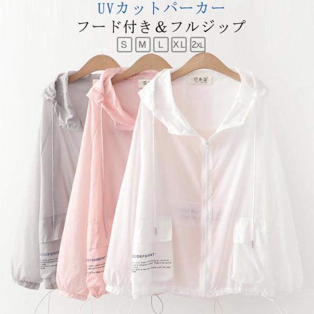 uvカット パーカー レディース 長袖パーカー フード付き ジャケット 薄手 ライトジャケット 春夏 ラッシュパーカー フルジップ パーカー マウンテンパーカー 涼しい アウター ライトアウター 羽織り 紫外線対策 トップス 長袖 通気性 中学生 ホワイト ピンク グレー 送料無料