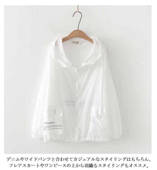 | S-2XL!紫外線を防ぐ、軽やかなUVカットパーカー。 気軽に羽織りやすく、日除け対策や冷房対策にも活躍。 コーデをワンランクアップさせる旬なアイテム。 スルッと滑らかで、ほんのりシワ感があり、シャカシャカとした生地感が軽やかで快適な1枚。 デニムやワイドパンツと合わせてカジュアルなスタイリングはもちろん、フレアスカートやワンピースの上から羽織るスタイリングもオススメ。 シンプルなデザインとカラーバリエーション(ホワイト、ピンク、グレー)で、どんなコーディネートにも合わせやすいアイテムです。中学生から大人まで幅広く着用可能です。 | |