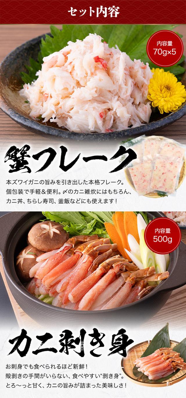 カニ鍋セット 本ズワイガニ ポーション 500g フレーク 70g×5 ずわい蟹 かに カニ 剥き身