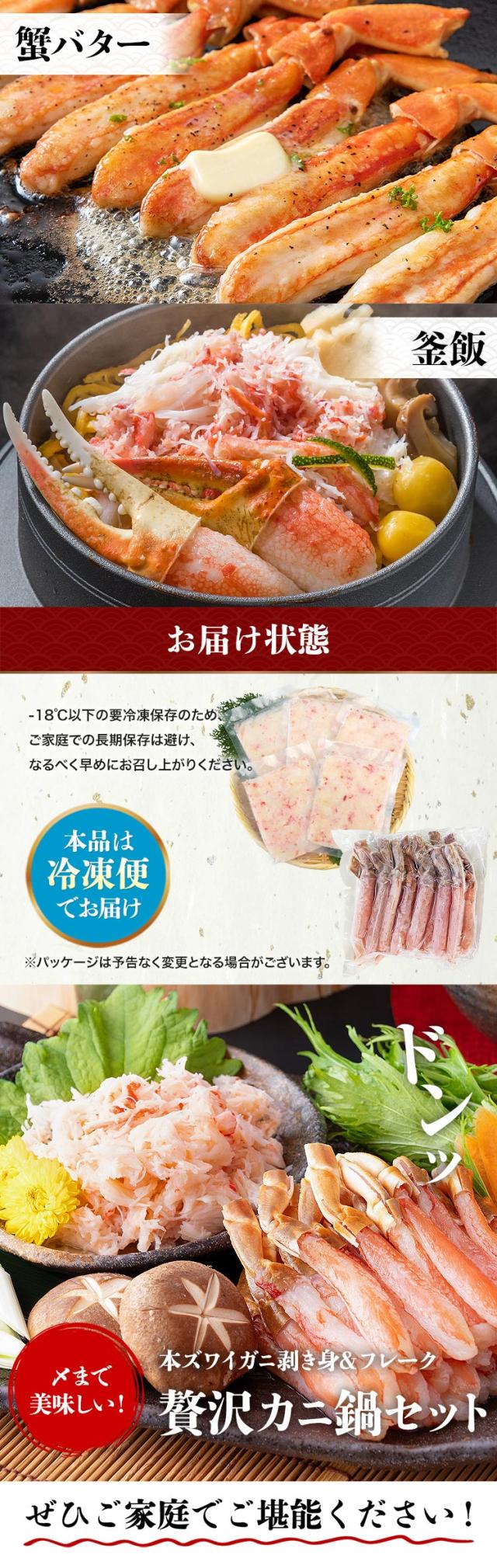 本ズワイガニの美味しさをたっぷり味わえる贅沢鍋セットです。