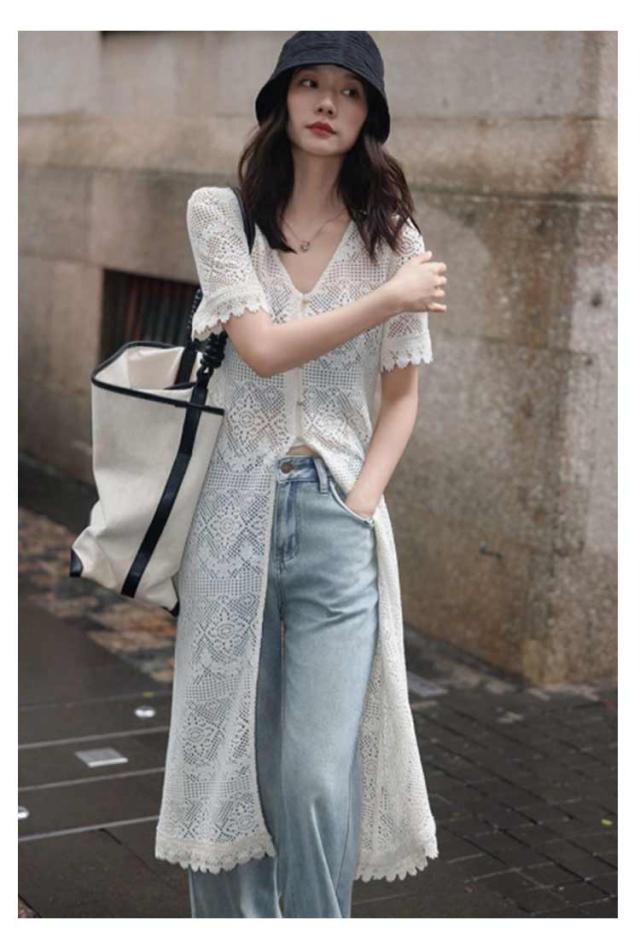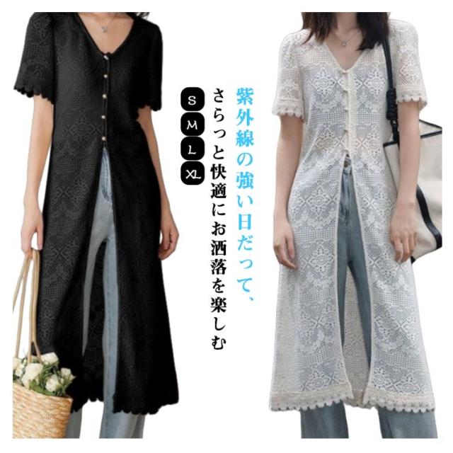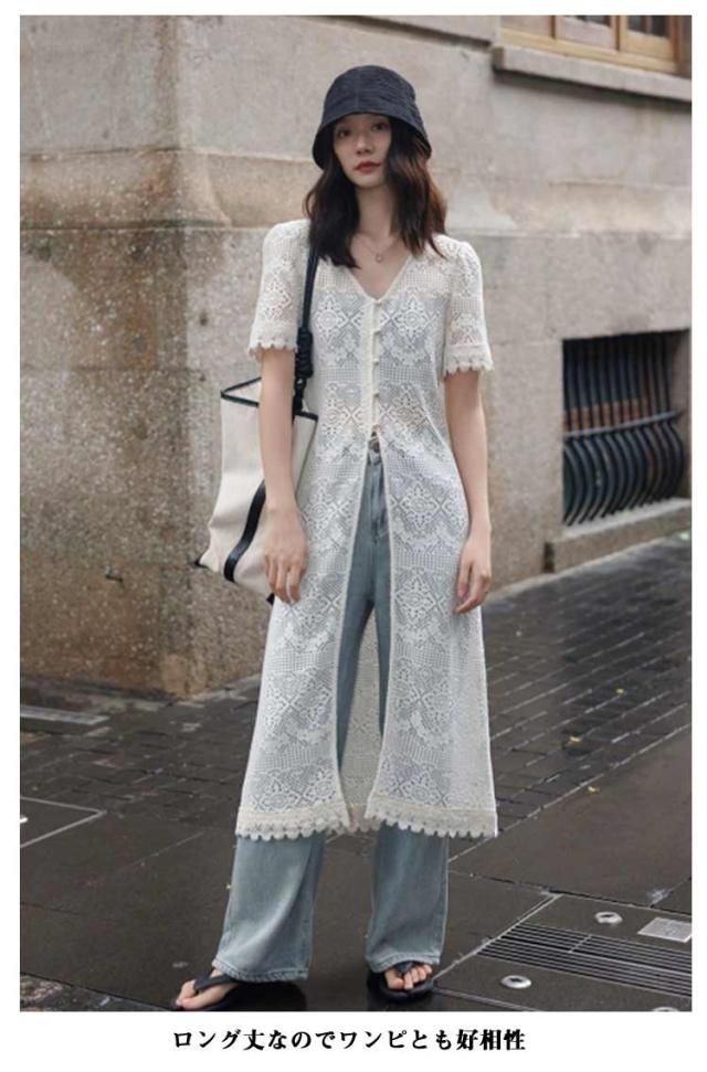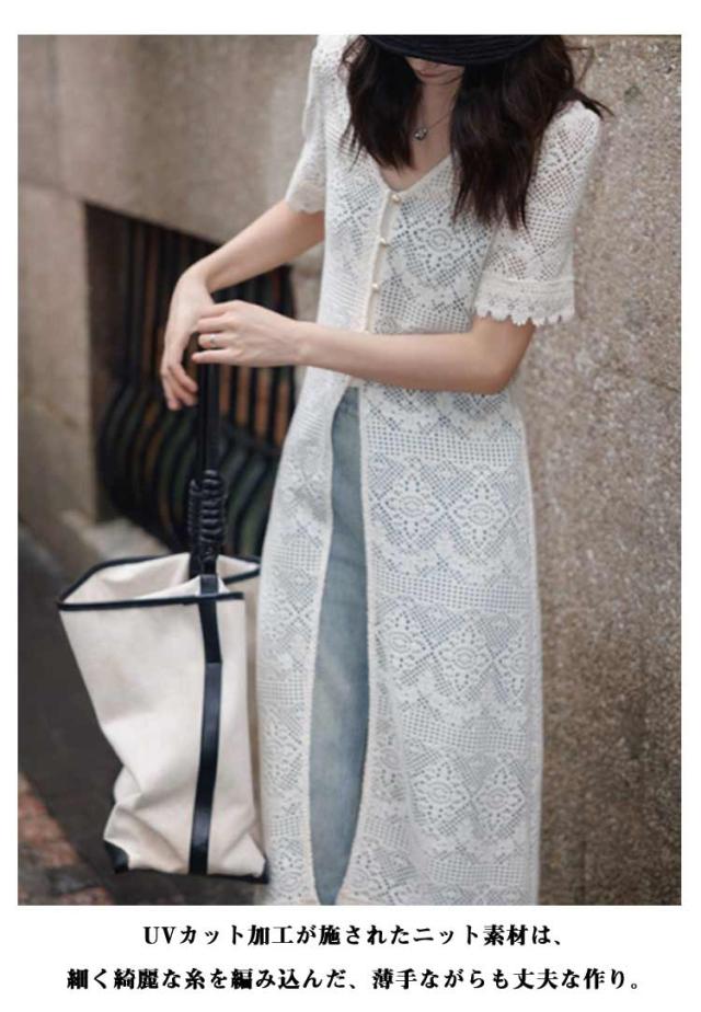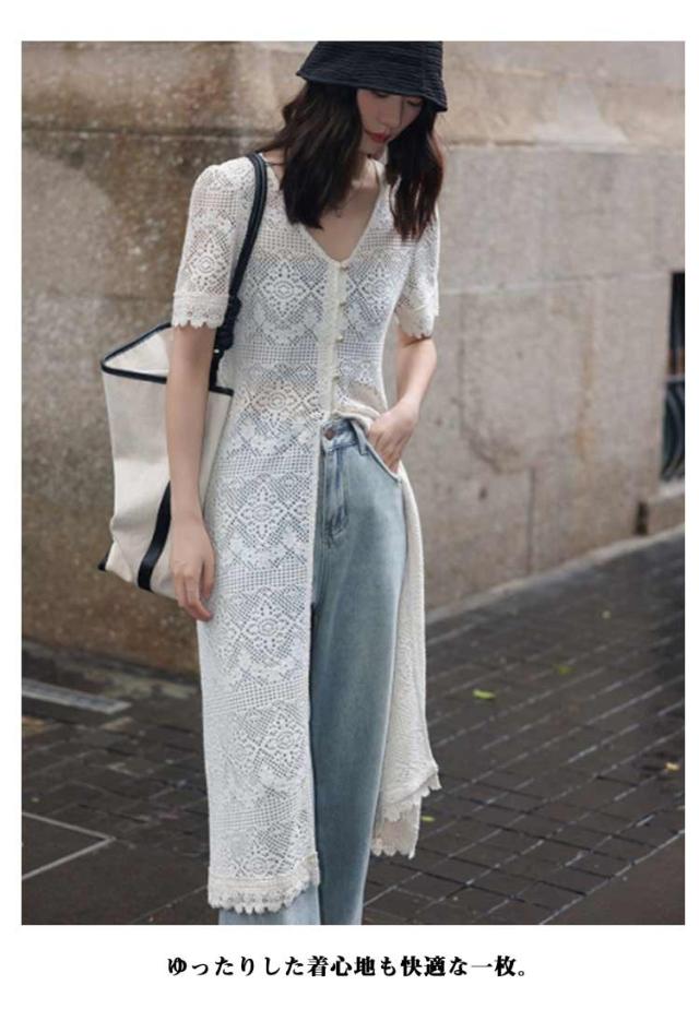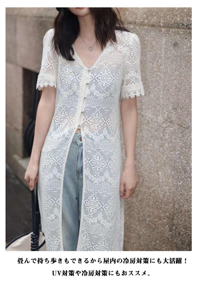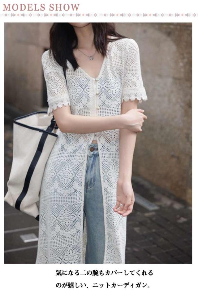 サマーカーディガン ボレロ レディース トップス 半袖 Vネック サマーニット UVカーデ 透け編み ロングカーデ 紫外線対策 冷房対策 羽織 シアー 体型カバー 大きいサイズ ゆったり 薄手 涼しい 羽織り ロング丈 無地 春 夏 秋 UV対策 婦人 30代 40代 50代 送料無料