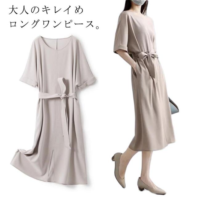 ワンピース レディース 半袖ワンピース 夏 ドレスワンピース きれいめ ウエスト紐調整可 体型カバー ロング 着痩せ おしゃれ Tシャツワンピース ゆったり ワンピース マキシ Aライン 春 接触冷感 フォーマル ワンピース オフィス 通勤 送料無料