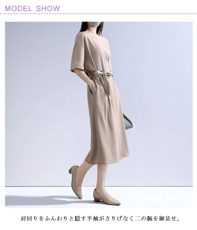 | 大人のキレイめロングワンピース。 肩回りをふんわりと隠す半袖がさりげなく二の腕を細見せ。 広がりすぎないラウンドネックはシンプルながらもスタイル全体を柔らかな印象に仕上げます。 落ち着いたロング丈にウエストマークでスタイルアップ効果も期待できます。 程よいスカートの広がりが大人女性の柔らかな印象を前面に押し出してくれます。 一枚で洒落たスタイリングが叶う優れものアイテム。 シンプルながらも女性らしい上品なディテールでディリー使いはもちろんのこと、オケージョンシーンにも対応できる、着映え十分な一着です。 細やかで動くたびに軽やかになびいて、1枚でも着映えること間違いなし。 | |