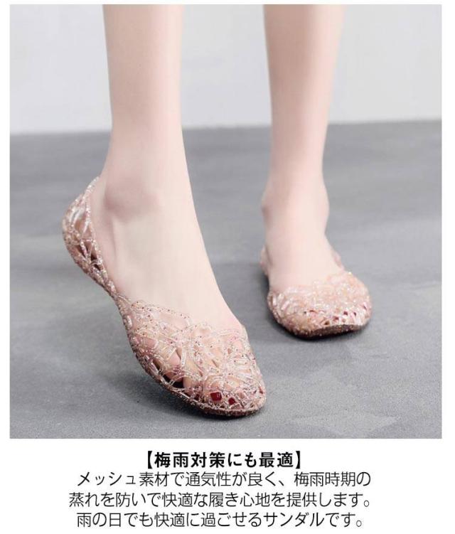 メッシュサンダル 通勤 痛くない レディース フラット パンプス ラバーシューズ メッシュパンプス 通学 ぺたんこ 軽量 バレエパンプス メッシュ サンダル キラキラ 歩きやすい カジュアル リゾート ビーチ アウトドア 梅雨対策 痛くない 23.0−25.5cm