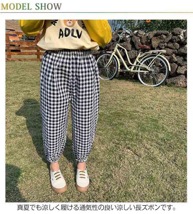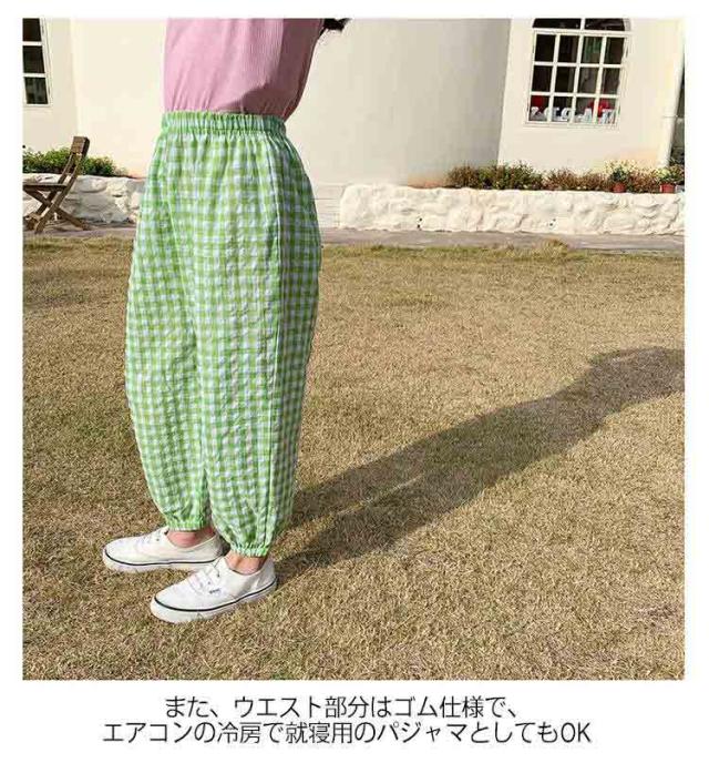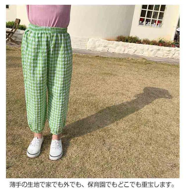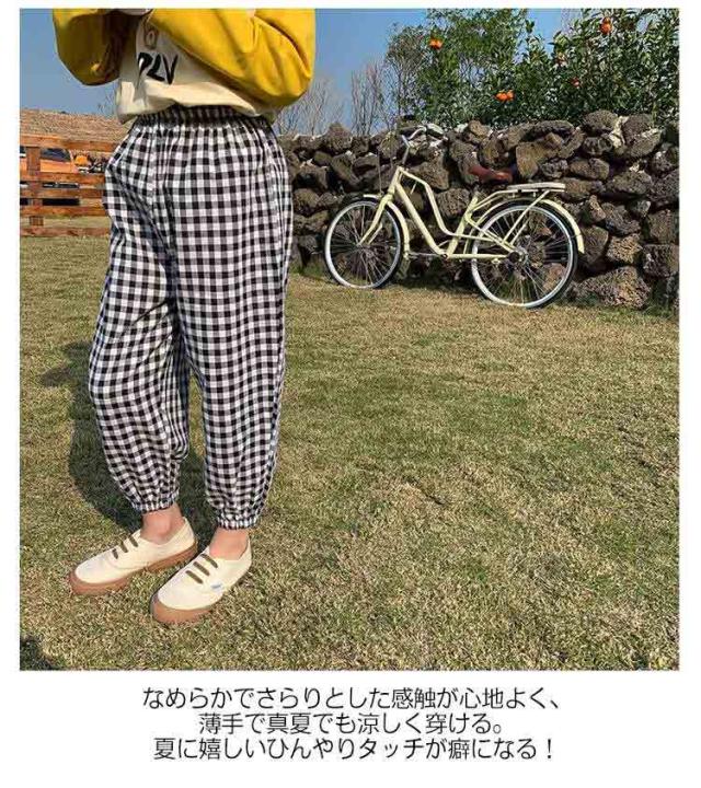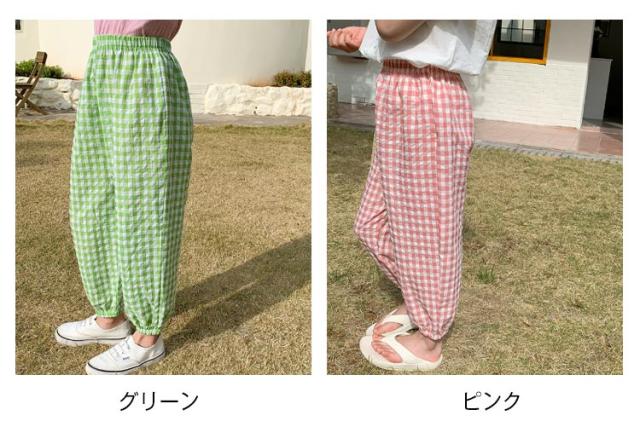 | 【春夏用子どもズボン】【全6色】【90−140cm】【可愛いチェック柄】 真夏でも涼しく履ける通気性の良い涼しい長ズボンです。 なめらかでさらりとした感触が心地よく、薄手で真夏でも涼しく穿ける。夏に嬉しいひんやりタッチが癖になる! ウエストゴムで履き替えやすい、室内でもお出かけの場合も着られるラクチンな長ズボン♪ 半ズボンと違い、紫外線や蚊や怪我からも保護されます。 薄手の生地で家でも外でも、保育園でもどこでも重宝します。 また、ウエスト部分はゴム仕様で、エアコンの冷房で就寝用のパジャマとしてもOK♪ | |