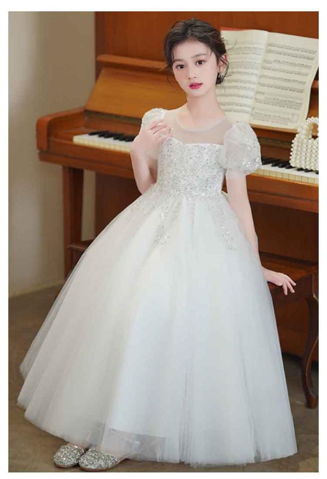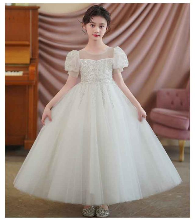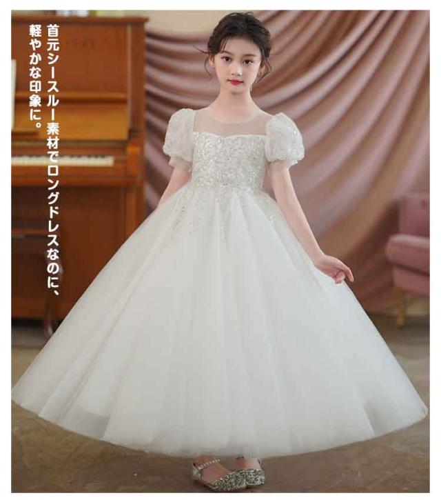 ドレス ピアノ発表会 女の子 パーティードレス 半袖 パフスリーブ チュール ロングドレス フォーマル 演奏会 七五三 小学生 中学生 キッズ 小学生 中学生 子供ドレス ピアノ 発表会 コンクール 送料無料