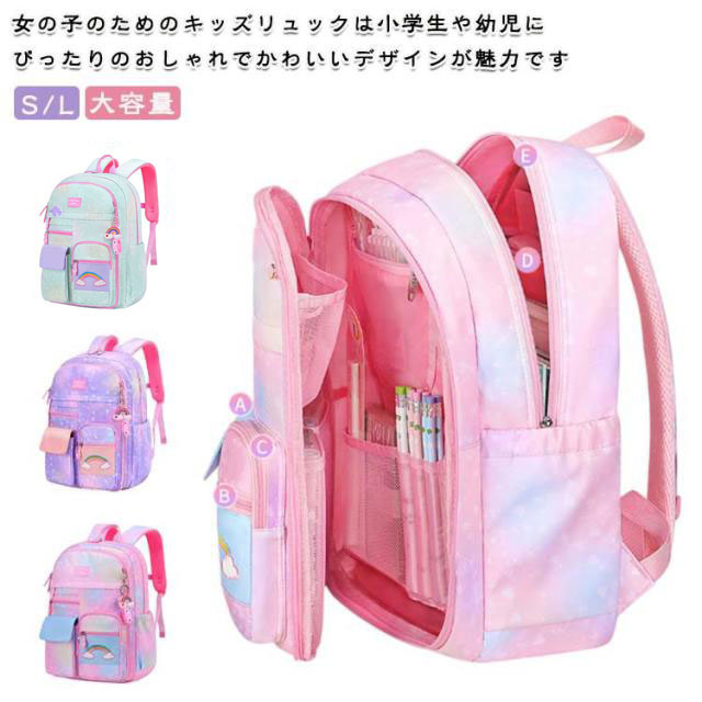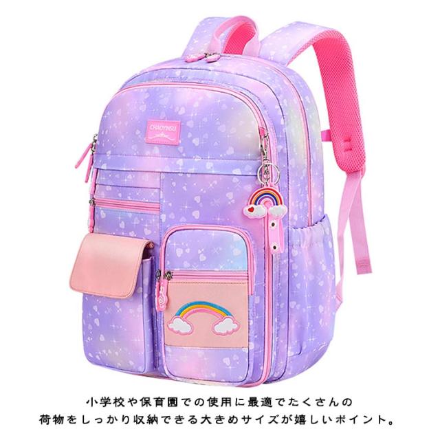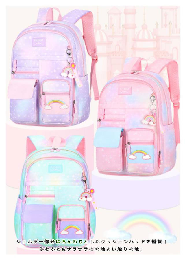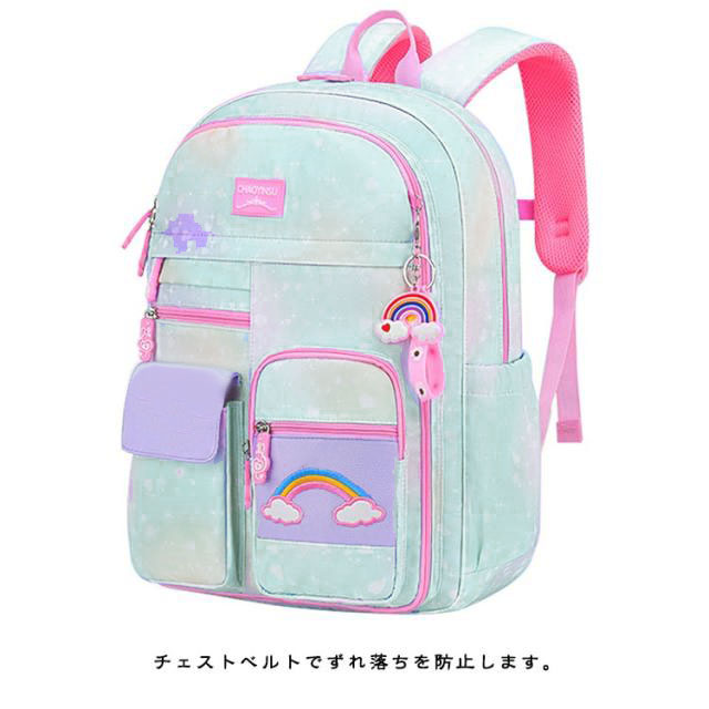 リュック キッズ 女の子 女児 通園 通学 小学校 保育園 幼稚園 メッシュ チェストベルト リュックサック バッグパック 軽量 大容量 可愛い カラフル デイバッグ グラデーション かわいい シンプル 大容量 丈夫 仕切りポケット 誕生日 クリスマス ギフト プレゼント 送料無料