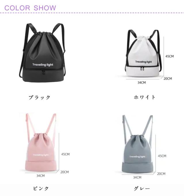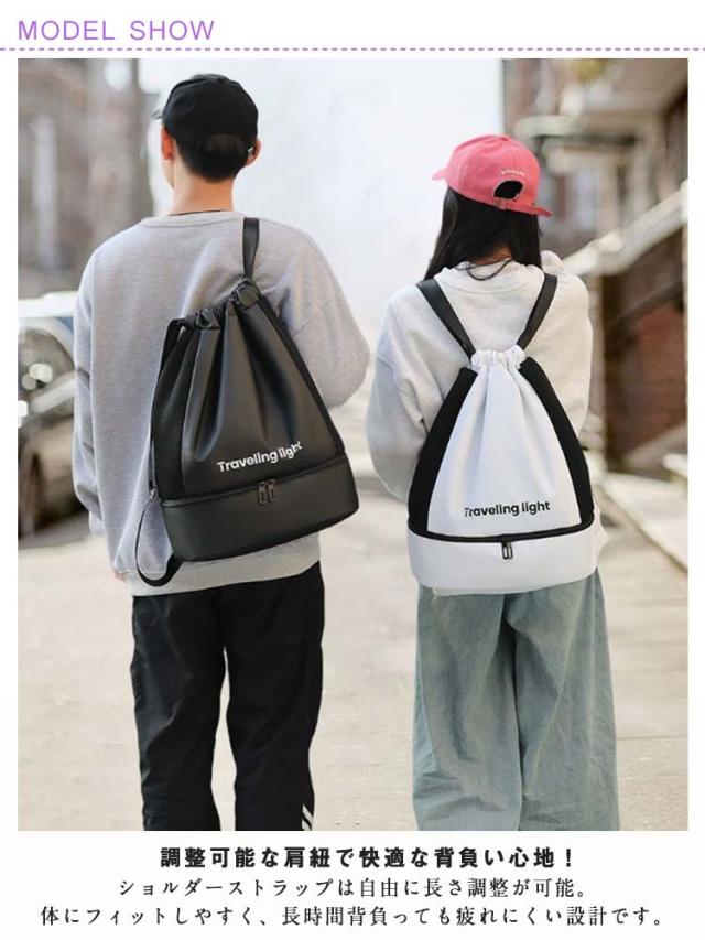 | 引き紐式で開閉ラクラク! ジムでも旅行でも! 湿った物を分けられる便利な仕切り 濡れたタオルや水着と乾いた衣類をしっかり分けられる設計で、スポーツ後やプールの使用に最適。衛生的で便利なアイテムです。 シューズ専用コンパートメント付き! バッグの下部には独立した靴用ポケットを搭載。ジム用シューズやサンダルを他の荷物と分けて収納可能で、匂いや汚れも気になりません。 撥水素材で突然の雨や水しぶきも安心! バッグ全体に防水加工が施されており、雨の日の通勤やプールサイドでの使用も問題なし。濡れても中の荷物をしっかり守ります。 調整可能な肩紐で快適な背負い心地! ショルダーストラップは自由に長さ調整が可能。体にフィットしやすく、長時間背負っても疲れにくい設計です。 シンプルかつモダンなデザインでどんなコーデにもマッチ! スタイリッシュな外観と落ち着いたカラーで、スポーツシーンはもちろん、普段使いや旅行にも違和感なく活用できます。 | |